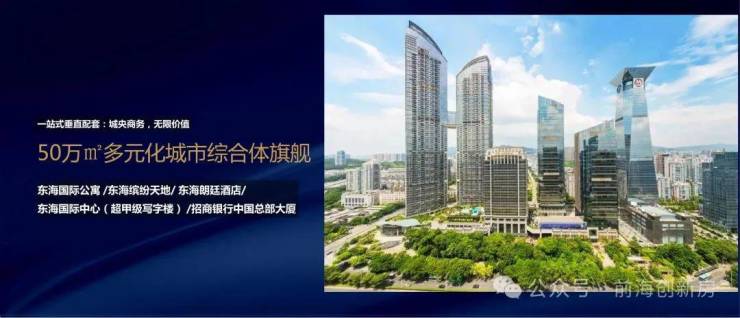 东海国际中心整个项目由办公楼、酒店、商务公寓、商业四大部分组成;东海国际中心整体由两座超甲级写字楼、五星级东海朗廷酒店、308米高摩天公寓东海国际公寓及时尚购物中心东海缤纷天地组成, 是现今深南大道两旁最大的综合建筑群;其中办公楼2幢,高度约为190米/150米;酒店1座,约为100米;商务公寓2幢,高度约为300米/255米;还有约65365平方米的商业。
