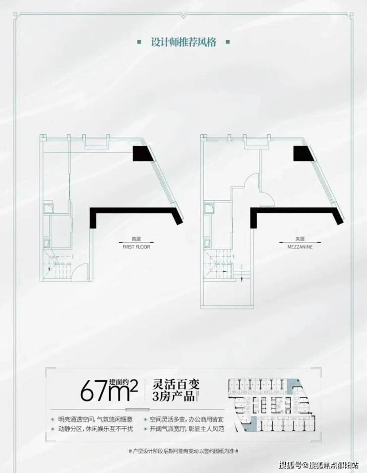在售户型: 4.5米高复式loft 31-74㎡(2-4房)