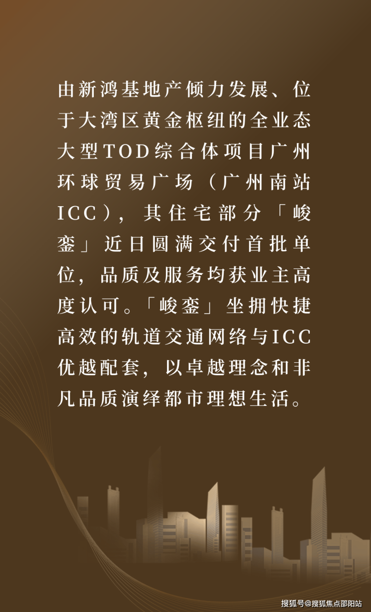 对标「香港ICC」前沿规划理念,「广州南站ICC」将高端商场、顶级写字楼、星级酒店、公寓及品质住宅「峻銮」等业态融为一体,通过连廊连接高铁站,实现“站城一体”。未来,旅客可体验“行李箱未放、购物已开始”的全新消费场景,住户亦可体验“工作-生活-休闲”三位一体的生活场景。从广州南站出发,串联起万博CBD、长隆文旅区与广州足球公园的「万长南黄金十公里走廊」,以“轨交+地标+产业”的独特模式,正快速重塑湾区的价值版图,构建满足不同客户消费需求的都市生活圈。