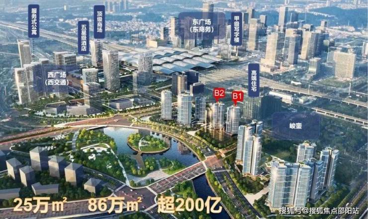 项目介绍:总用地面积约为25.1万㎡,总建面约86万㎡,总投资超200亿
