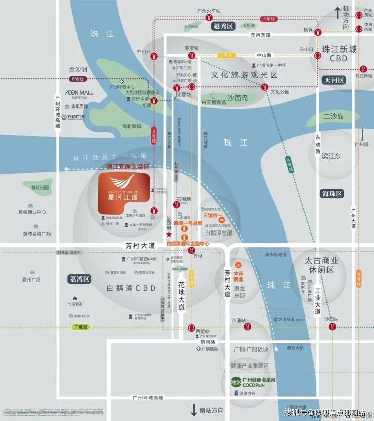 项目约750m即达5号线地铁滘口站,30分钟直达珠江新城,白鹅潭未来有超10条地铁线路穿过,覆盖大湾区1小时交通生活圈