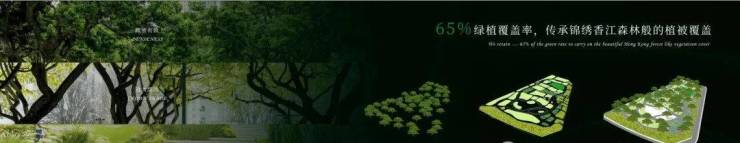 融汇东方美学、贯通西方理念, 兼具生态与造物的平衡,传承锦绣香江森林般的植被覆盖, 绿地率近65%。