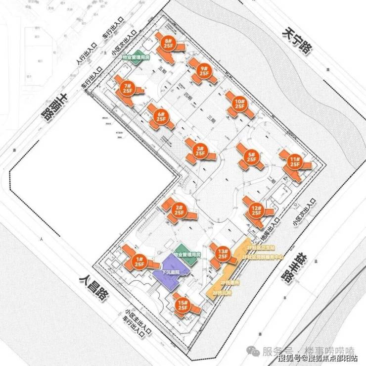小区整体呈高低配布局,共规划31栋楼,包括2栋25层高的人才房住宅和29栋联排合院。