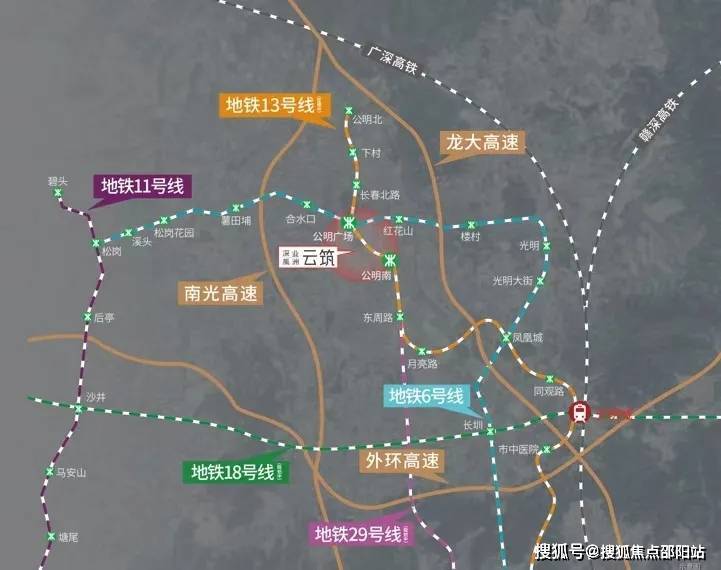 另一个是在建的13号线公明南站(距项目约700米)。13号线被誉为“科技线”,串联起光明科学城、留仙洞总部基地、南山科技园、后海总部基地等重要科技圈,未来必将成为深圳人最重要的快速通勤线之一。