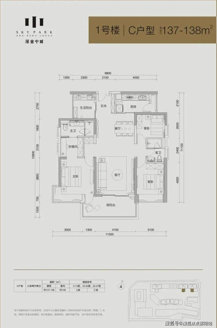 值得注意的是,1栋37层以上为2梯2户板楼结构,无遮挡视野,南向可远眺深圳湾,北向全景俯瞰香蜜公园,是景观资源最优越的楼栋。