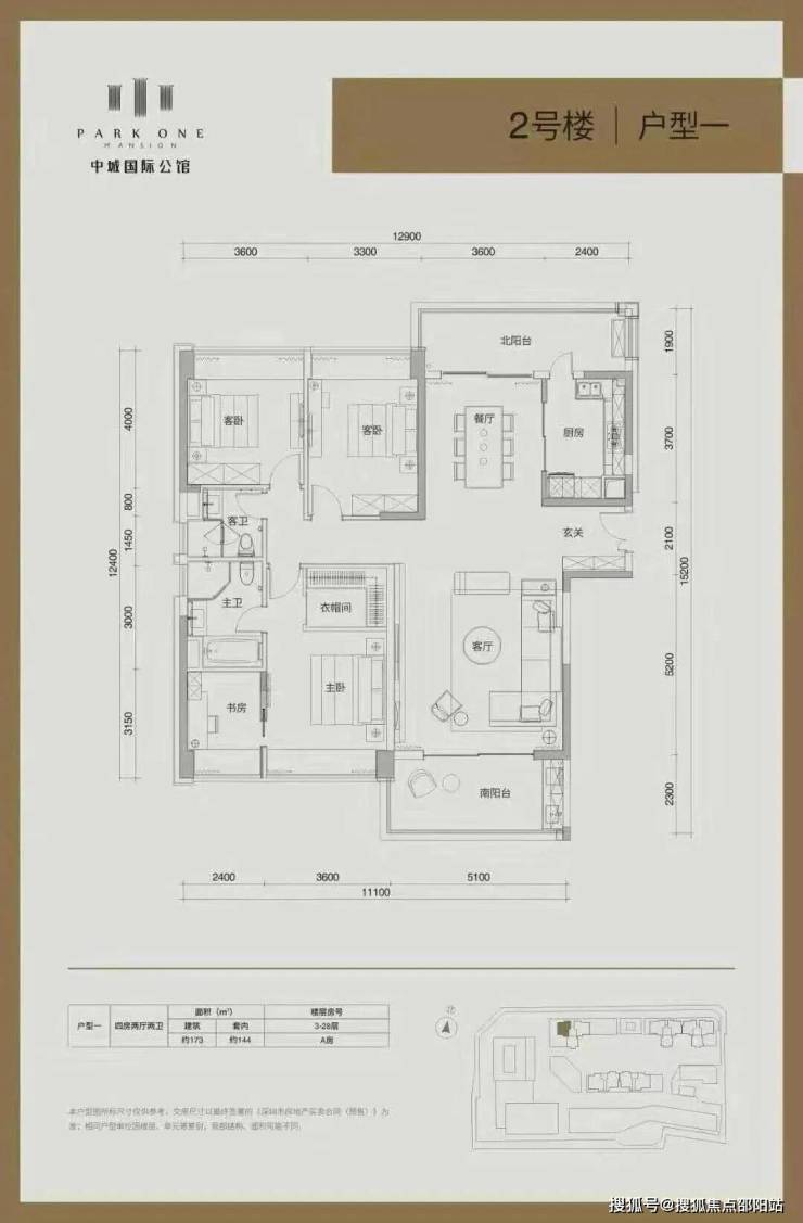 175㎡四房两厅三卫:南北双阳台对流设计,通风采光较好,北侧可看香蜜公园景观。