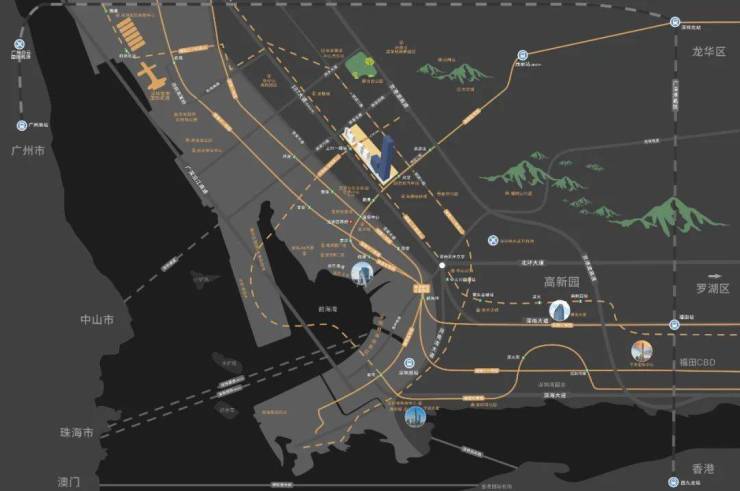 项目地处107大道首排,位居前海宝中、大空港双区交汇腹地,隶属大前海前沿阵线,以近1公里横向地标引领107时尚商务走廊前排。项目规划为集5A级高端写字楼、高端公寓、星级酒店服务和旗舰商业等为一体的总建面约50万㎡封面综合体。