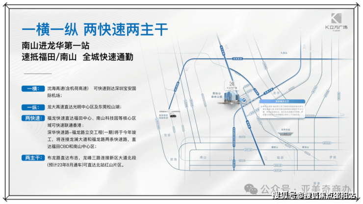 交通的通达性赋予项目天然优势:近邻地铁 6 号线阳台山东站,未来接驳 13 号线后,两站即入深圳北 CBD,四站直达深圳北站,广深港高铁两站速抵香港西九龙。沈海高速、福龙快速等路网交织,无论是日常通勤还是跨城商务,都能从容应对。