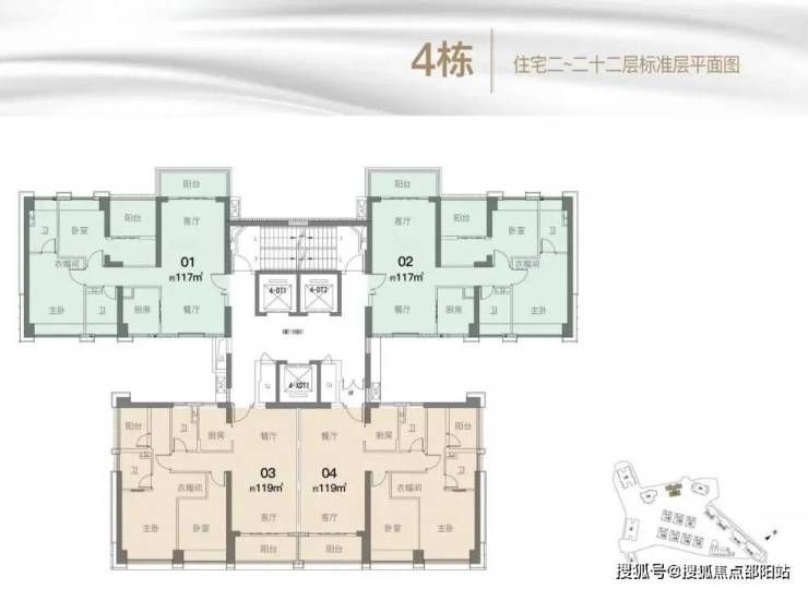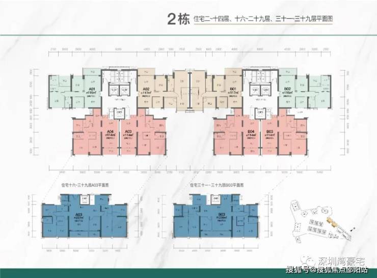 2-14层:一层4梯8户 其中四户是94㎡的两房,四户是133㎡的三房