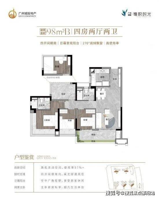 全屋超实用大开间设计,打造四开间朝南+奢阔景观阳台+大尺度飘窗+高拓展空间,让生活大有“享”法,户户主卧带270°巨幕飘窗,日常起居尊享超广角风光。