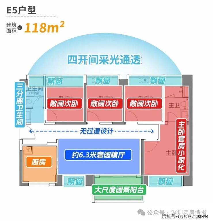 约100㎡的三房户型,三开间全部朝南,通风采光无死角,尽享阳光的宠溺。