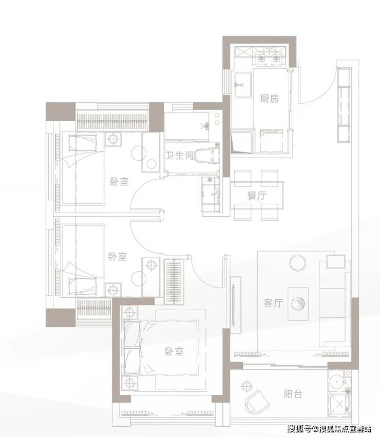 主力户型:约79㎡三房两厅一卫