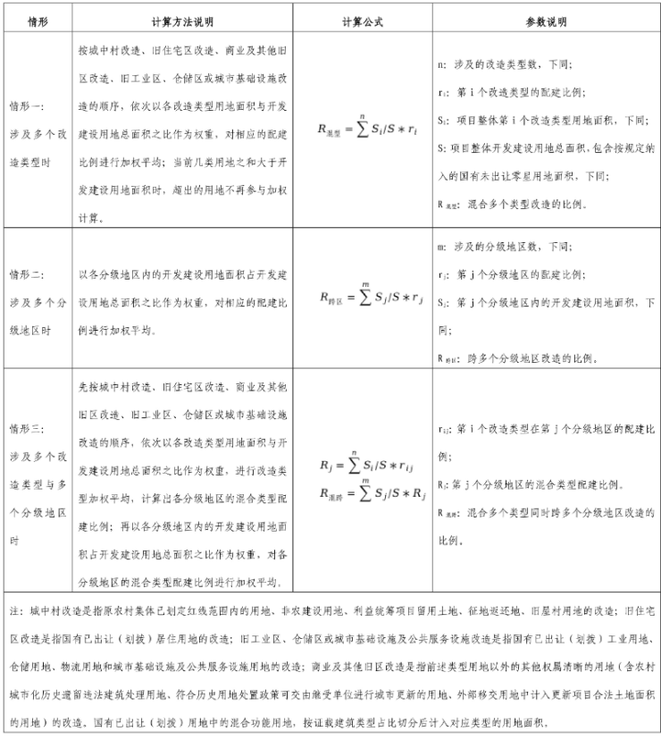 分类地区和改造类型的配建比例详见附表1。