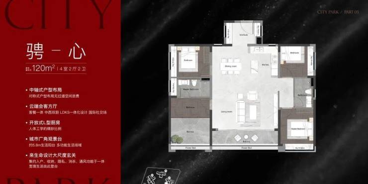 该栋为25层高,两梯三户设计,只有两个面积段,120㎡和140㎡,户型做得不错,在景观展现上用了功,极大程度去放大观江面,比方说超宽阳台、L型主卧转角飘窗、客厅预留观景飘窗等等,主打改善户型,2025年9月整体交房