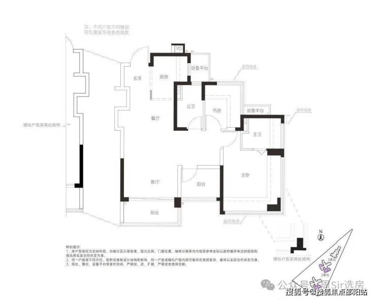 约 110㎡:3+1 房 2 卫,南北通透,灵动空间可作书房/多功能房;