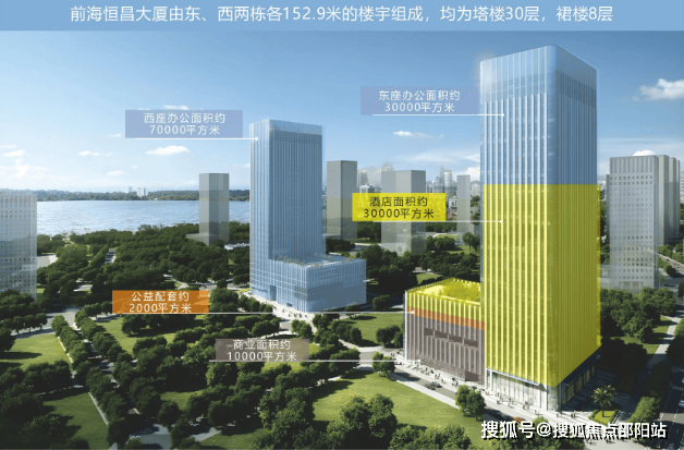 (1)153米高楼:30000㎡的办公面积(塔楼17-30层、30000㎡的酒店(裙楼6-8层,塔楼4-16层)、7700㎡裙楼商业(裙楼1-4层)、3000㎡的地铁商业(地下负一负二层)