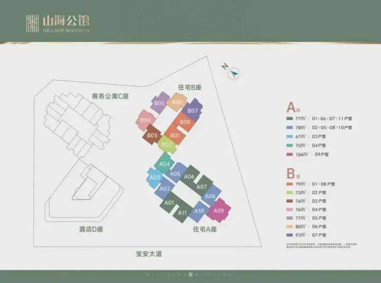 主力户型:山海公馆73—105㎡2-3房;山海御园132-175㎡4-5房;