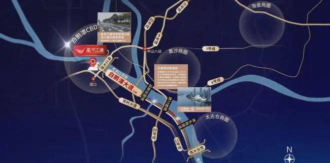 未来通过白鹅潭大道约4公里直达白鹅潭CBD腹地