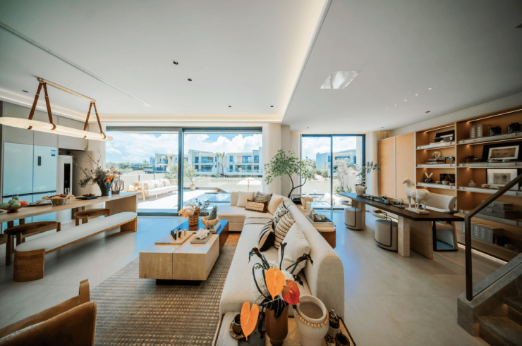 走进室内,一楼超大公区,LDK一体化设计,开间超10米,大开间、大面宽,最大限度延景入室的同时,还打造了超尺度的家庭大厅。