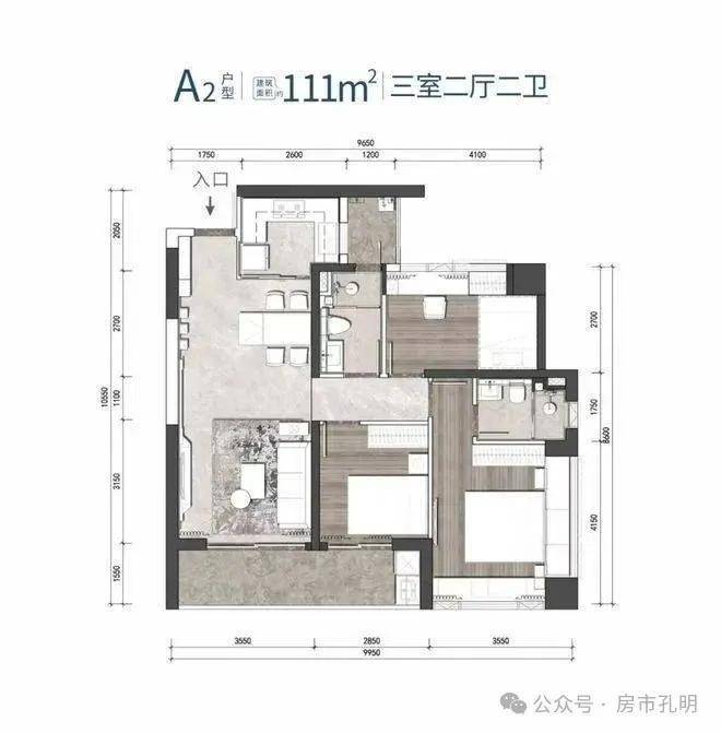 A户型 建筑面积约109-111㎡ 3房2厅2卫