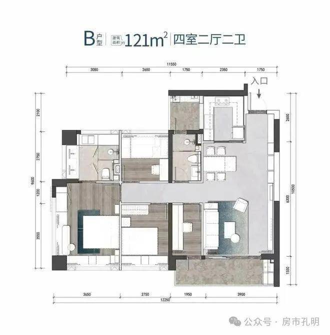 B户型 建筑面积约121㎡/121㎡ 4房2厅2卫