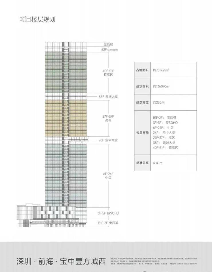 华侨城宝辰,高度约230米,总建面约13.5万㎡,是片区天际线的“制高点”代表,致力于打造集城市中心丰盛配套、公园绿地、精品地铁商业、互联社交空间为一体的区府CBD湾芯公园资产典范。