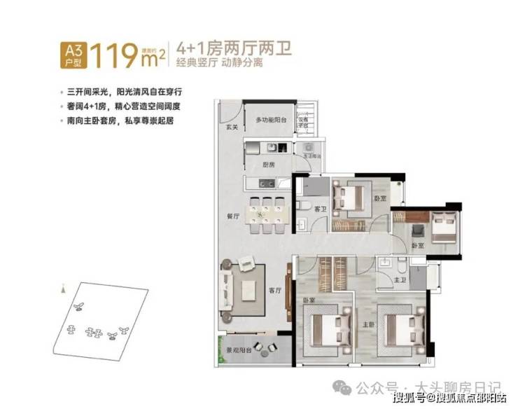 【119㎡4+1房2厅2卫(带主套)】总价650-750万