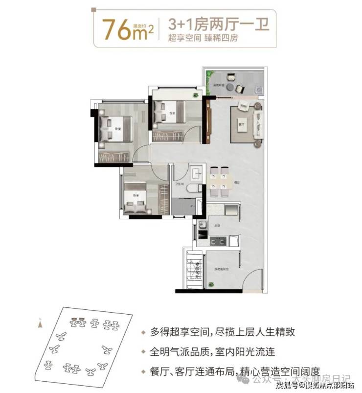 【88㎡3+1房2厅2卫(带主套)】总价470-540万