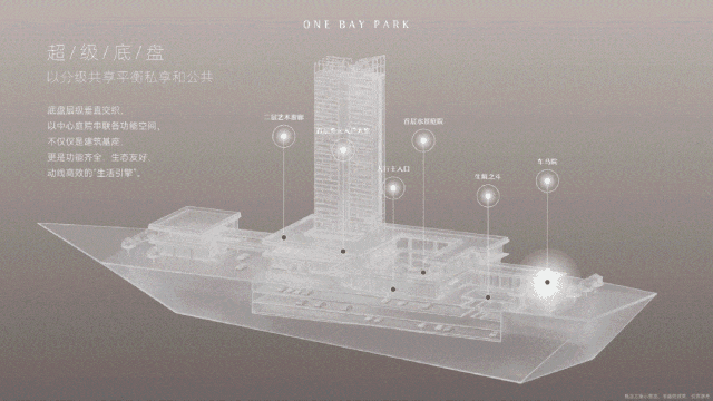 不同于传统豪宅简单堆叠功能的“盒子”思维,项目创新性地提出了“超级立体底盘”概念,让社区本身成为一座功能复合的“垂直生活城”。