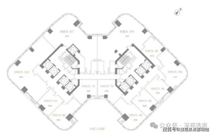 塔楼体块设计为弧形收边,以独特舒展的曲线建筑轮廓,与城市界面和谐相融 方胜纹双核心筒的设计既提升了建筑效率,又保障了私密性
