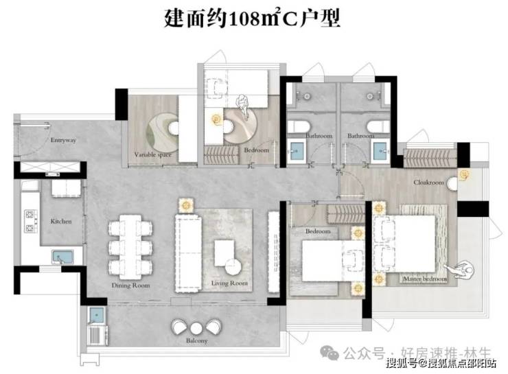 ●阳台+餐客厅+第三拓展空间,在家就能开party