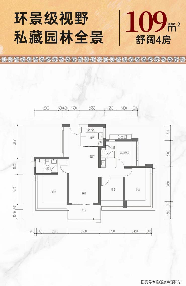 👑约109㎡双龙抱珠四房,折后单价约5.1-5.28万/㎡,折后总价约557-576万