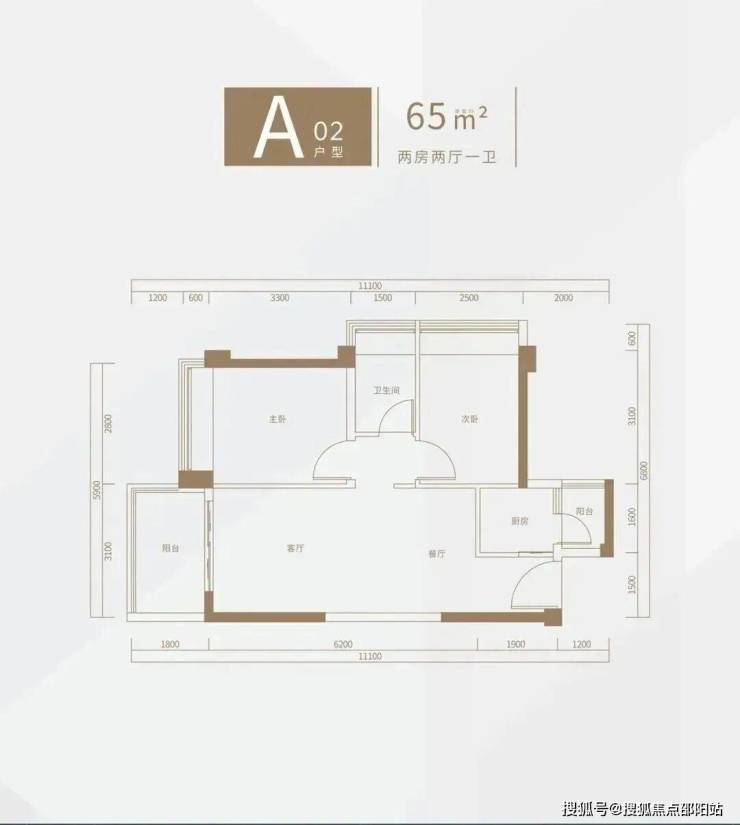 【户型鉴赏】【A-02】建面约65㎡两房两厅一卫