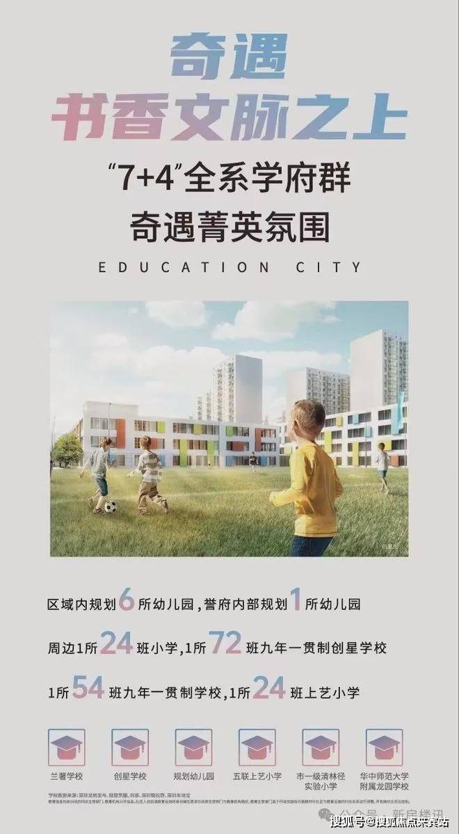 “7+4”教育体系:片区内6所幼儿园、誉府内部规划1所幼儿园,周边规划有2所24班小学、1所72班九年一贯制学校、1所54班九年一贯制学校。高密度、超多学校资源配置,堪称深圳教育大城典范。