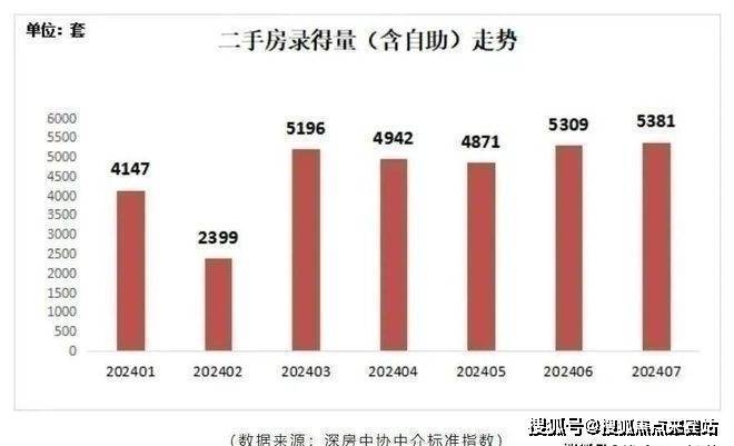 二手房网签录得量方面,据深房中协统计,2024年7月全市二手房录得5381套,环比增长1.4%,同比增长79.4%,并创下2021年2月以来的新高。