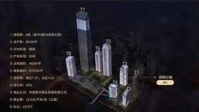 南区分为:T5、T6、T8公寓,T7为环球商务中心。