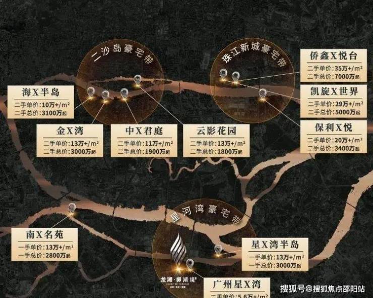 广州黄金中轴之上,千万级豪宅鼎立其间,呈现出“2+1"的豪宅分布格局。