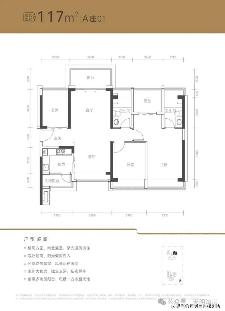 建面约117㎡南北通透4功能空间✨南北通透;四开间朝南;端头位;卧室均带飘窗