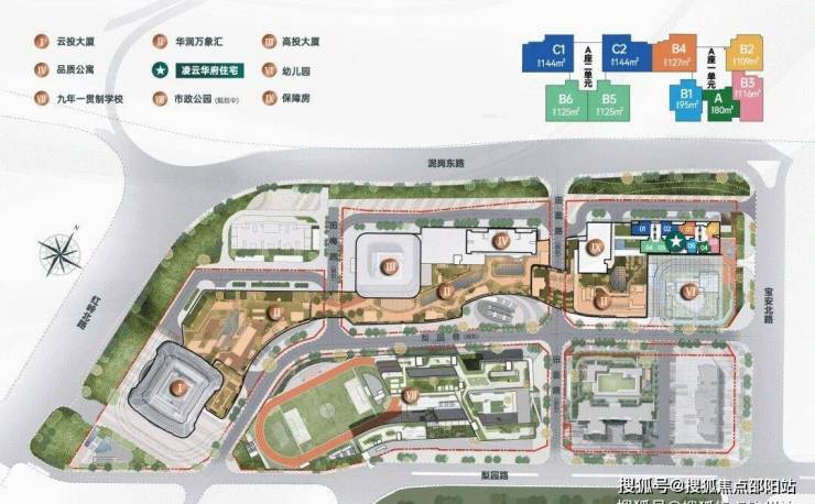 综合体具体包含高端商务写字楼(云投大厦)、研发办公楼(高投大厦研发办公楼)、商务公寓、云端住宅(凌云华府)、华润万象汇商业、配建幼儿园,以及坐拥家门口九年制学校。