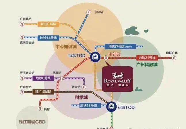 侨建·御溪谷地处广深科技走廊起始点的中新知识城南,地铁21号线与穗莞深城轨双线交汇之地,地铁口就在社区红线范围内,目前已全线通车。1站到镇龙,换乘快线2站地铁到天河(大观南路站),地段价值日益彰显。