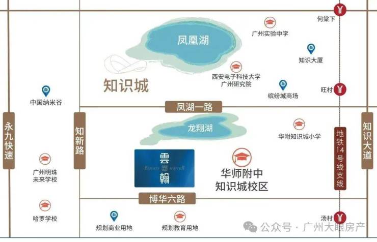 位于知识城起步区,最近的地铁是14号线汤村站,距离约2公里,