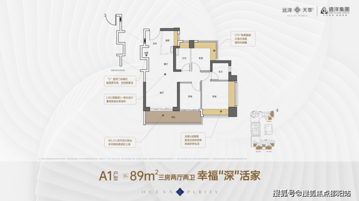 89㎡,到改善的约110-128㎡,均设计了连通客厅和次卧的双开间景观大阳台,尺度达到了约5.9-6.5米。