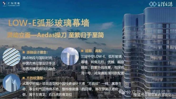 6、源系TOP级作品: 云端地标 环幕视野0约208米云端地标,270°环幕视野,坐拥地标级城市景观与稀缺山水资源:2定制超白三层中空LOW-E曲面玻璃搭配横向铝板线条,标识性的超流线立面建筑