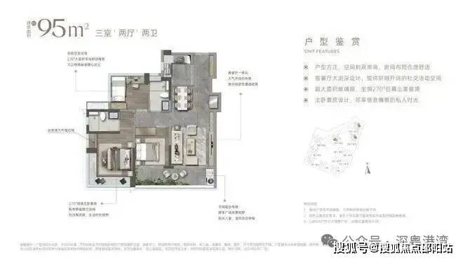 主卧小家化:主卧+衣帽间+独立卫浴+270°转角巨幕飘窗(仅01户型)