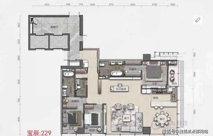 天幕藏品,总建面约8.6万㎡,主打建面约125-280㎡天幕藏品,分布在楼层的中区、高区、超高区,分别命名为风邸(6-24F)、兴邸(27-37F)和颂邸(40-52F)。