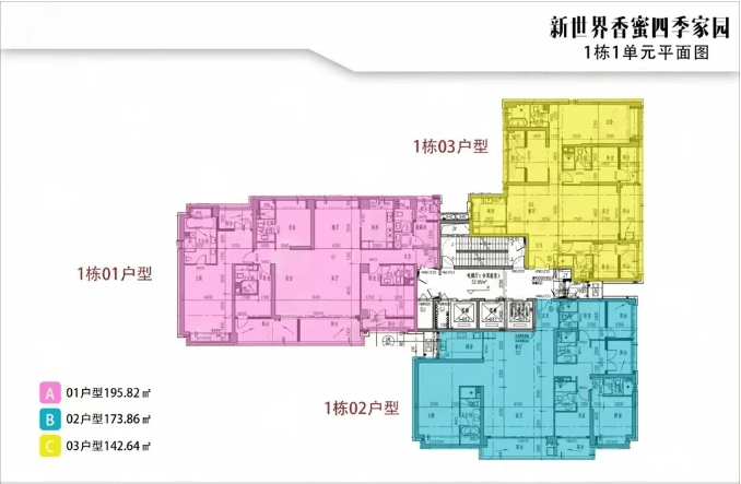 :105㎡三房、125-144㎡四房、190-230㎡五房、260-280㎡六房,高区3梯3户,低区3梯5户。