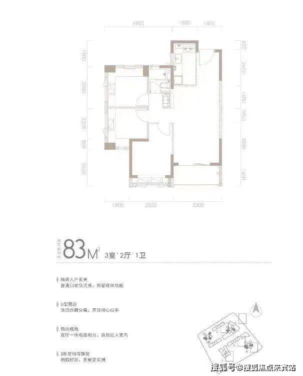 建面约83㎡ 3房2厅1卫