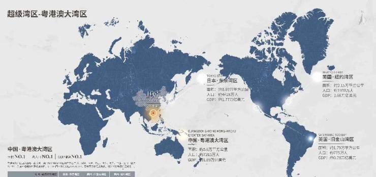超级湾区粤港澳大湾区为世界经贸集散地,在此再度勃兴,拥有3大世界级邮轮母港、5大千亿级国际空港,港口货柜吞吐量约6800万标箱,机场货邮量超810万吨,旅客量约2.23亿人次。