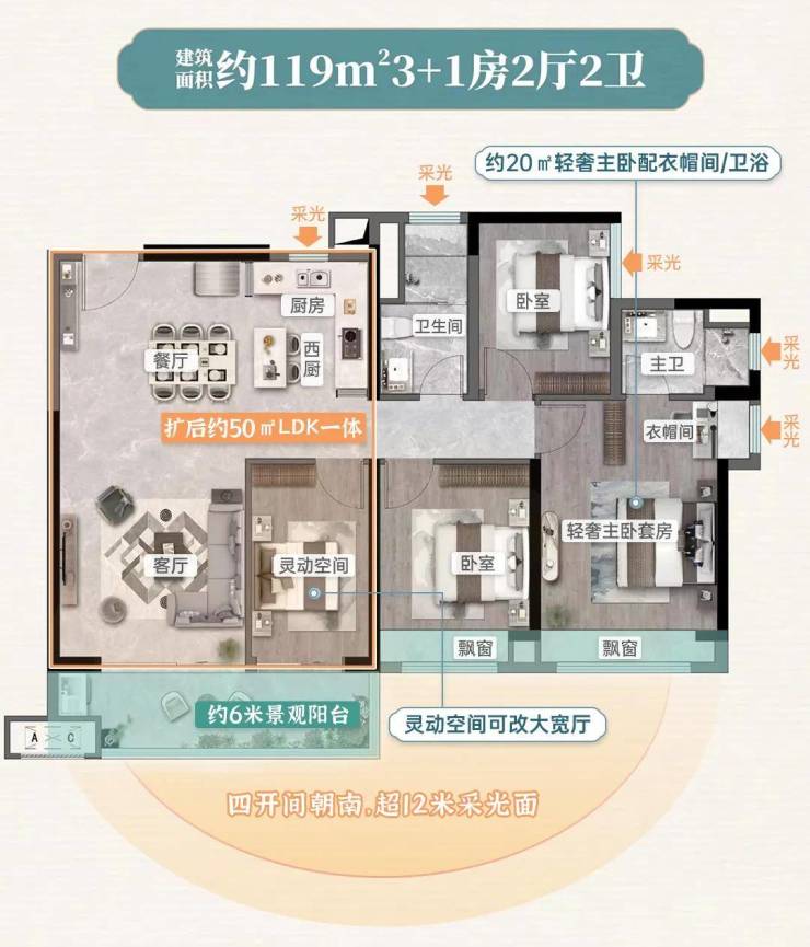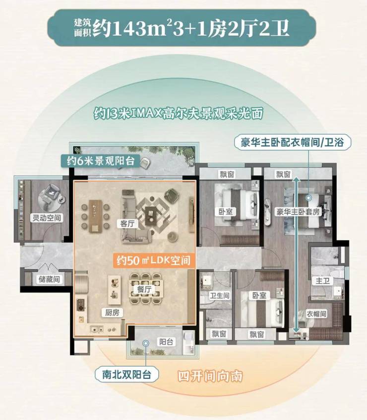 超12米IMAX采光面,约50㎡LDK+X空间,约6米大阳台...市面上其他盘同等面积,拥有其中一点两点已是极致,而项目直接将全部融入产品。
