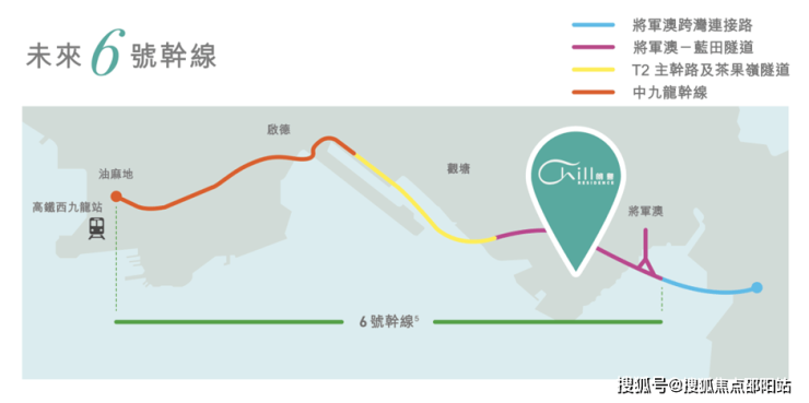 九龙东各项基建工程正如火如荼地进行,其中连六号干线,預計将于2026年全线通车2,九龙东与西九龙的交通更见完善。六号干线全长4.7公里,采用双程三线分隔车道的设计,根据政府介绍,能够纾缓中九龙主要东西向道路交通挤塞情况,并藉此改善附近社区环境,包括绿化及景观、重置公共设施、保育文物及特色地点。通车后,由油塘出發往西九龍,車程只需約8分鐘3,非常方便。